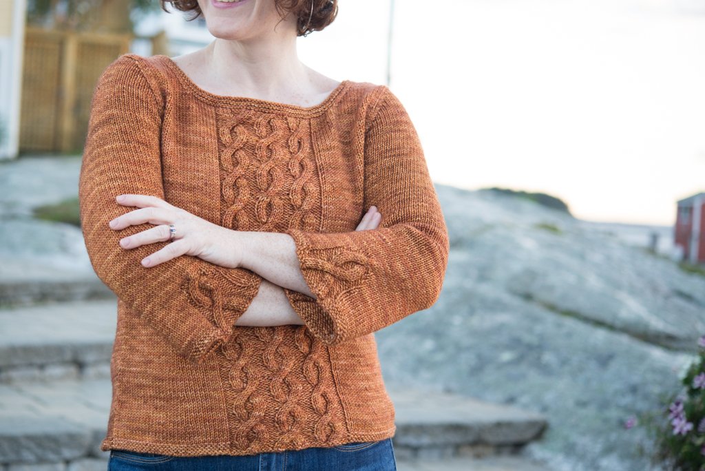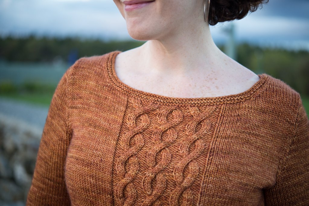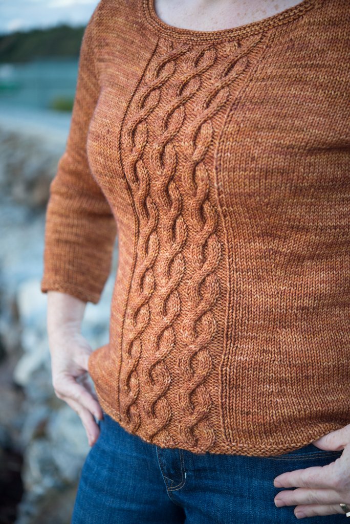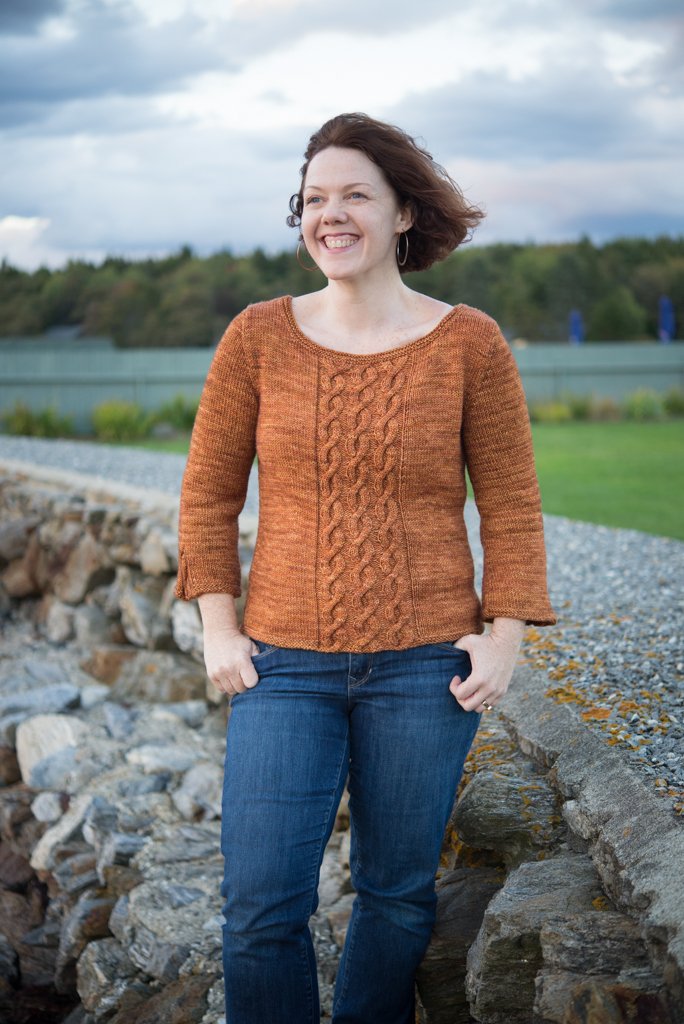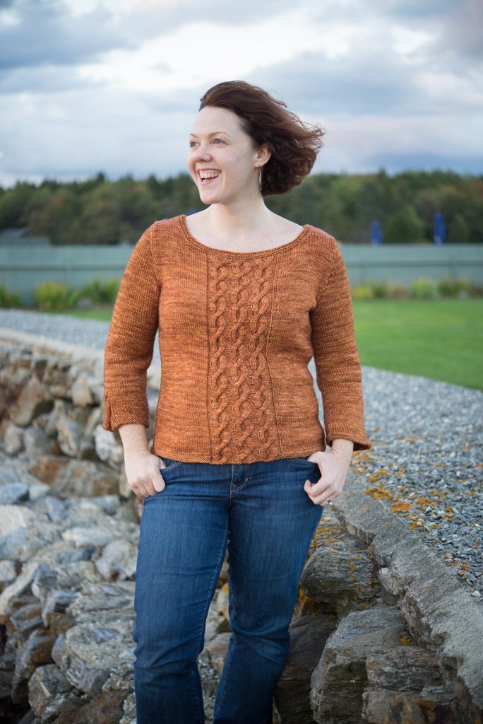 Birch Bark was part of the design collection for my very first make. wear. love. fall sweater retreat, held in my hometown each fall. It's inspired by my hometown, too: The weather on the coast of Maine is crisp, the light is golden, and nature is constantly calling. Curves are everywhere – on the waves, on the trees, in the rocks. I wanted a pullover that was flattering and comfortable, but that also used cables to evoke the things I love about the landscape here.