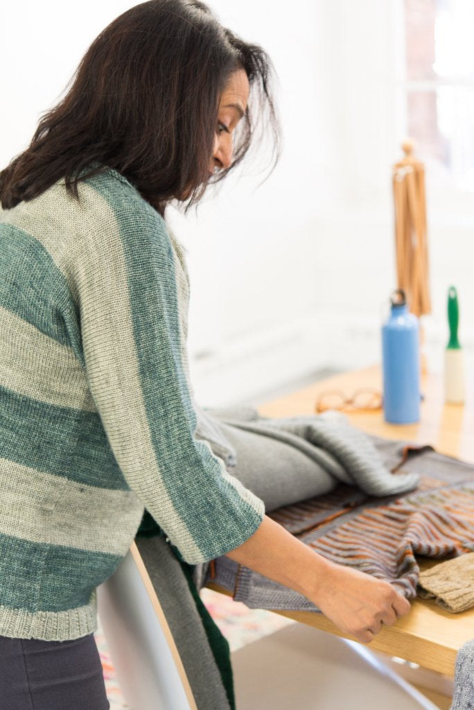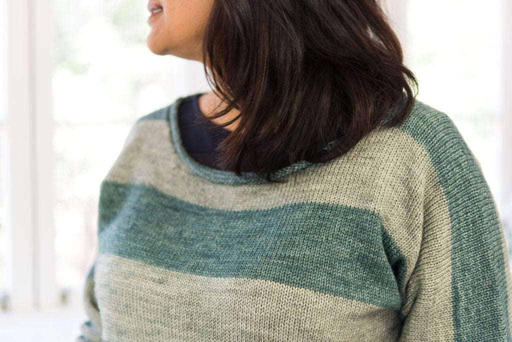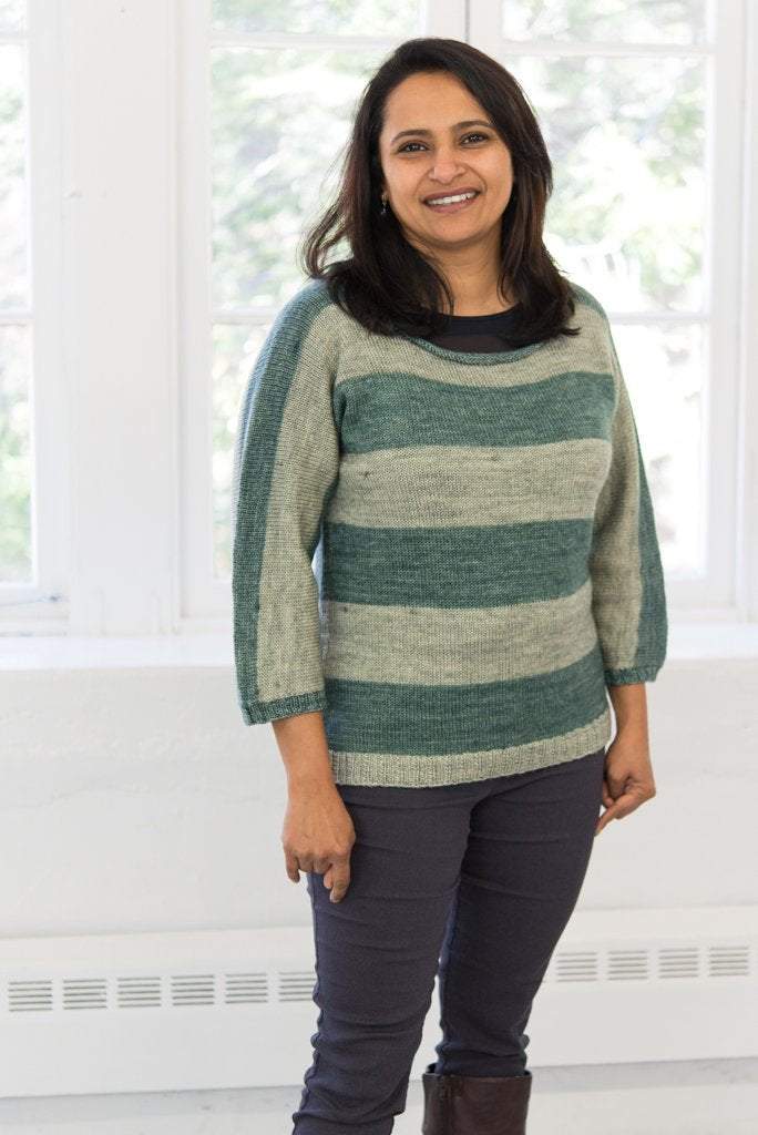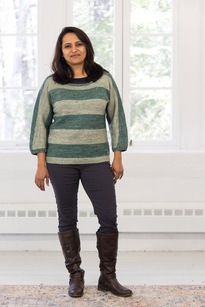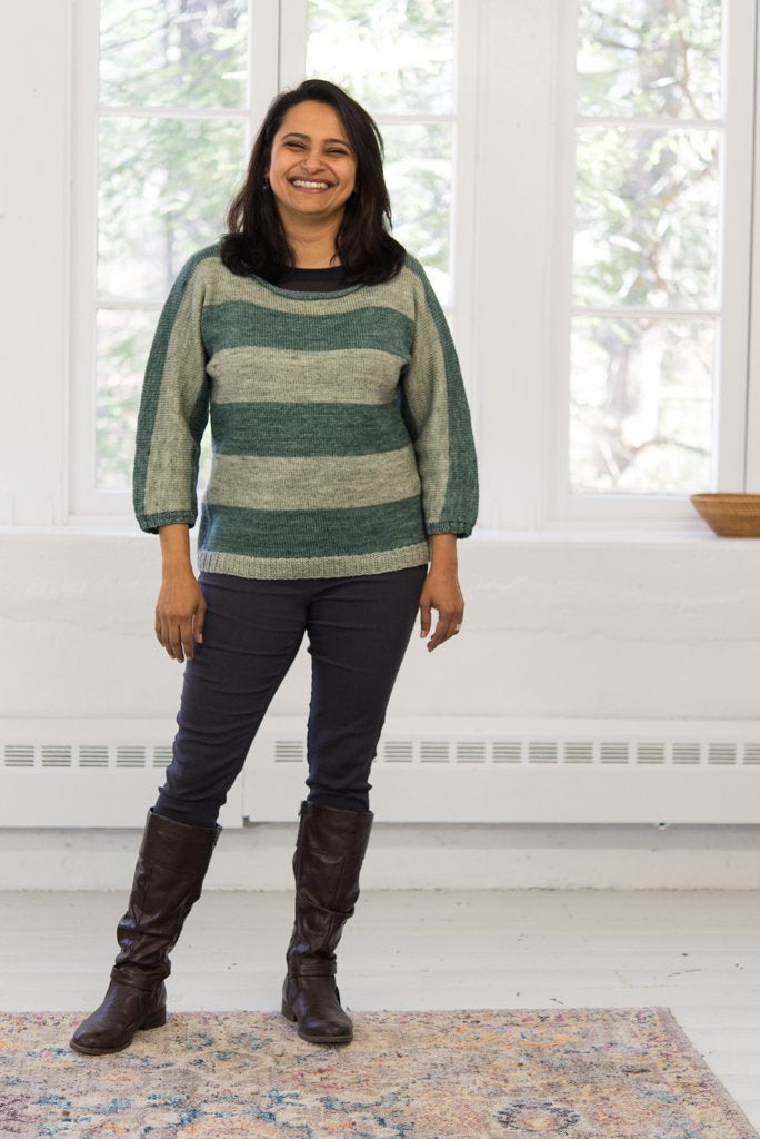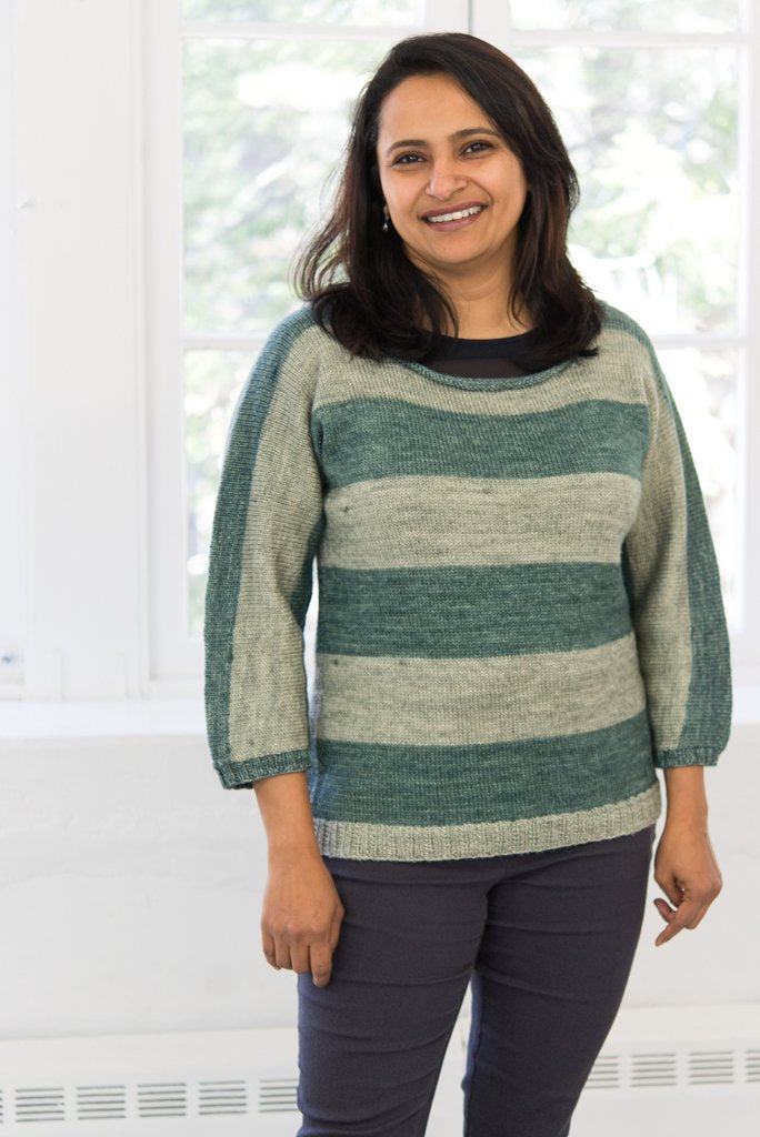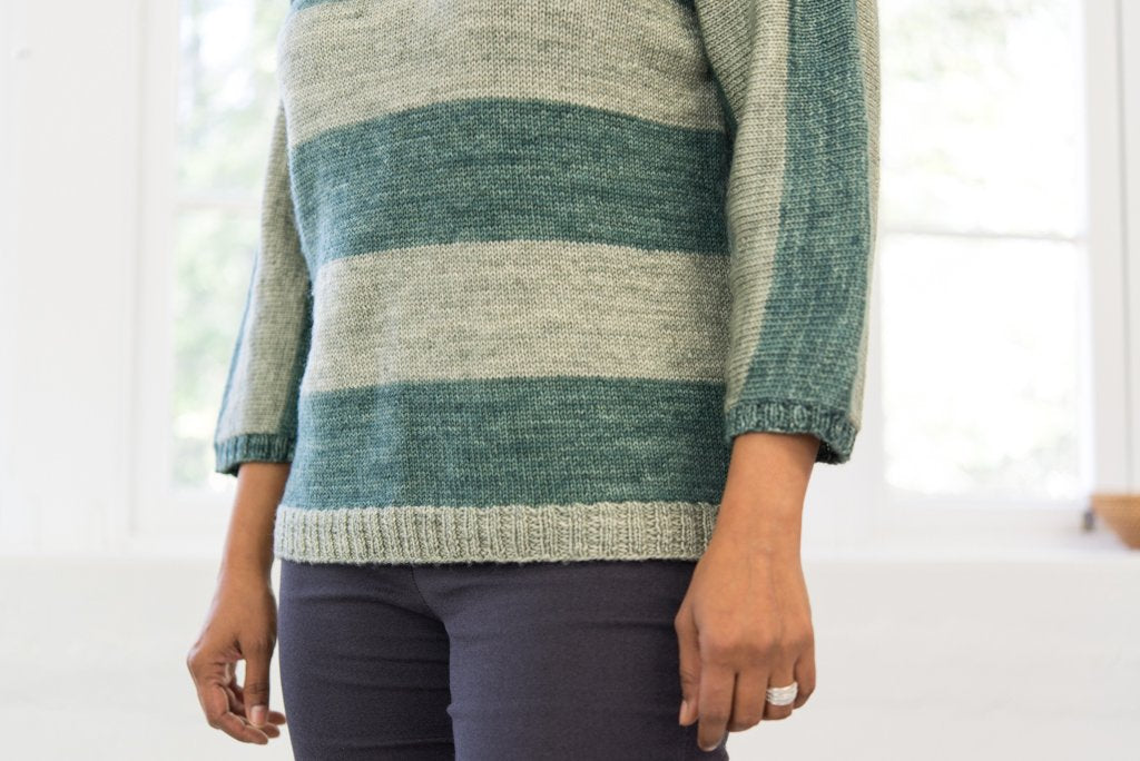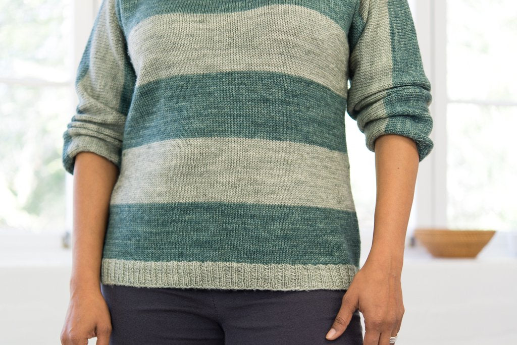Add some kicky stripes in beautifully matched colors, and the sweater practically knits itself – it took me well under a week to work up this sample! And I’ve been wearing it since.
