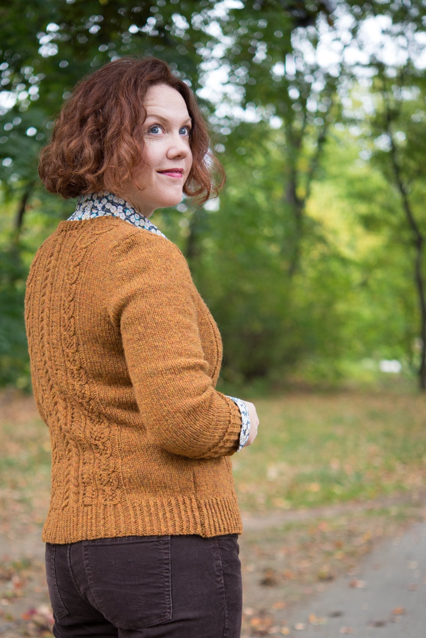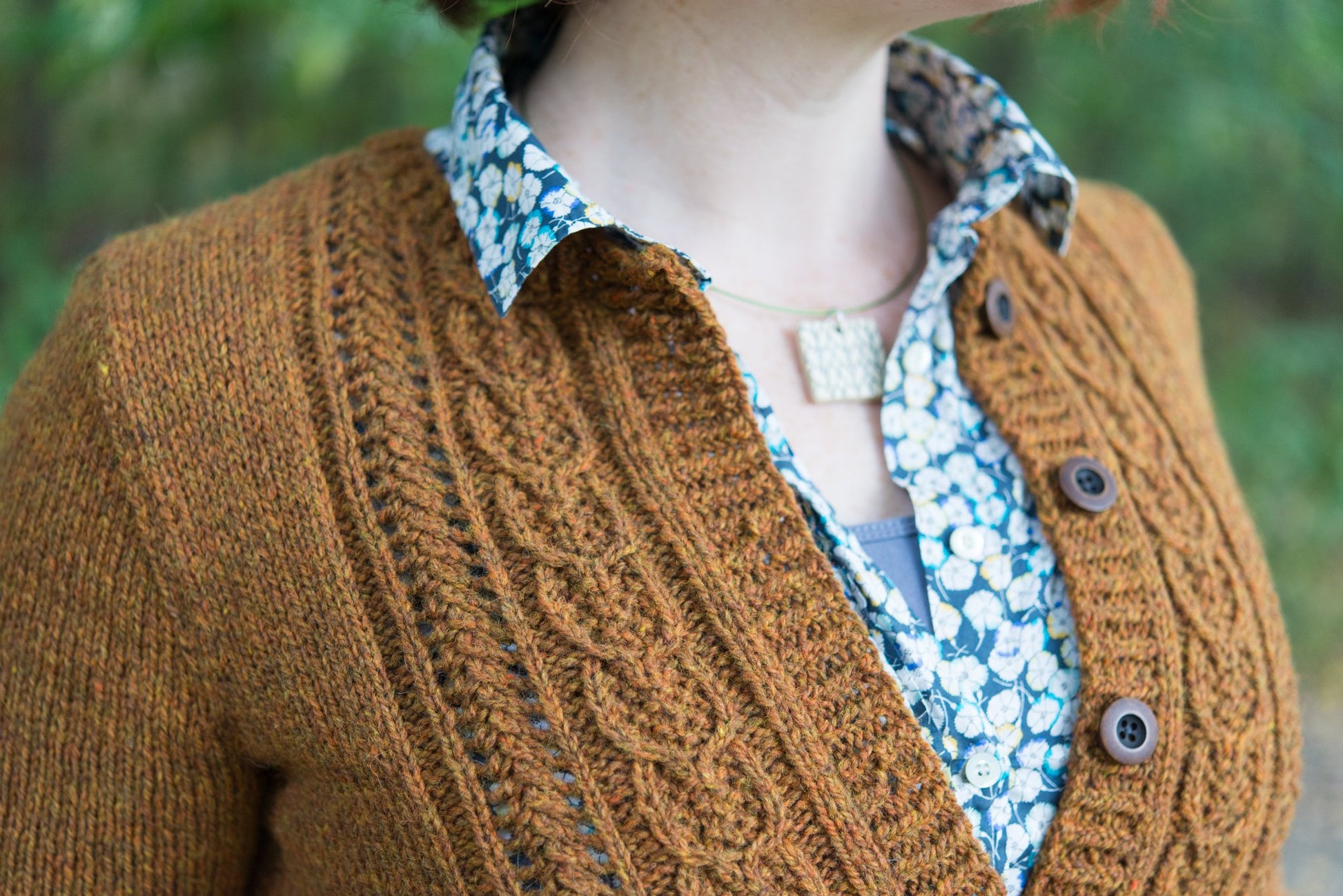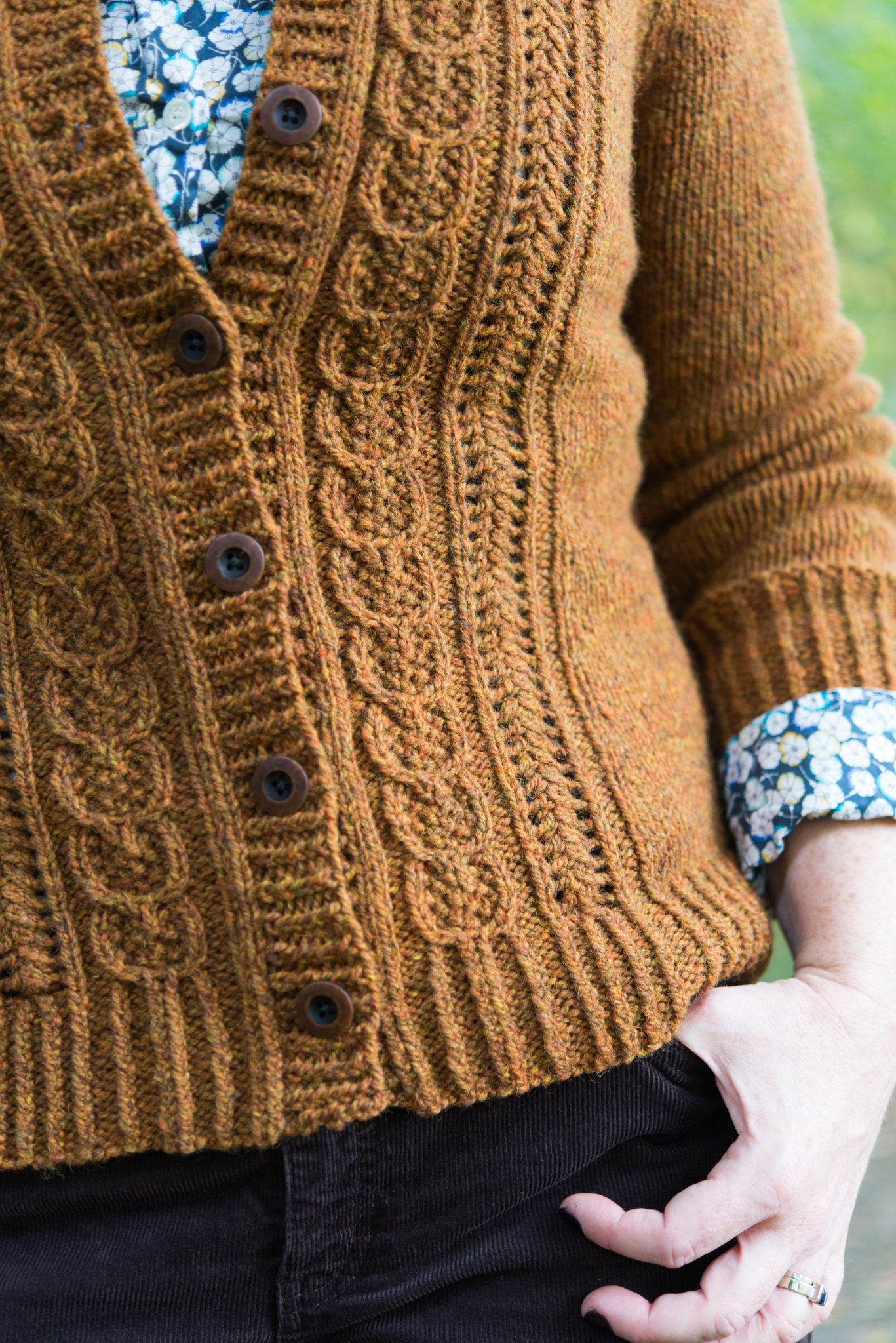 Acorn Trail is Amy's go-to cardi for sweater weather. Cables, a gorgeous tweedy wool, a little bit of openwork to keep things from being too heavy - they all make Acorn Trail a great layering piece. (Or a knockout on its own.)