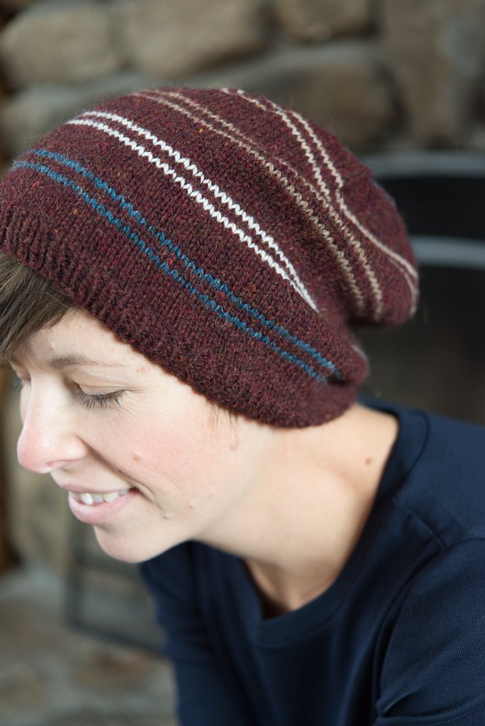 Noanet Peak is worked in Green Mountain Spinnery Alpaca Elegance, in Rosehip (MC) with Ceylon, Cream, Cappuccino, and Chai accents.