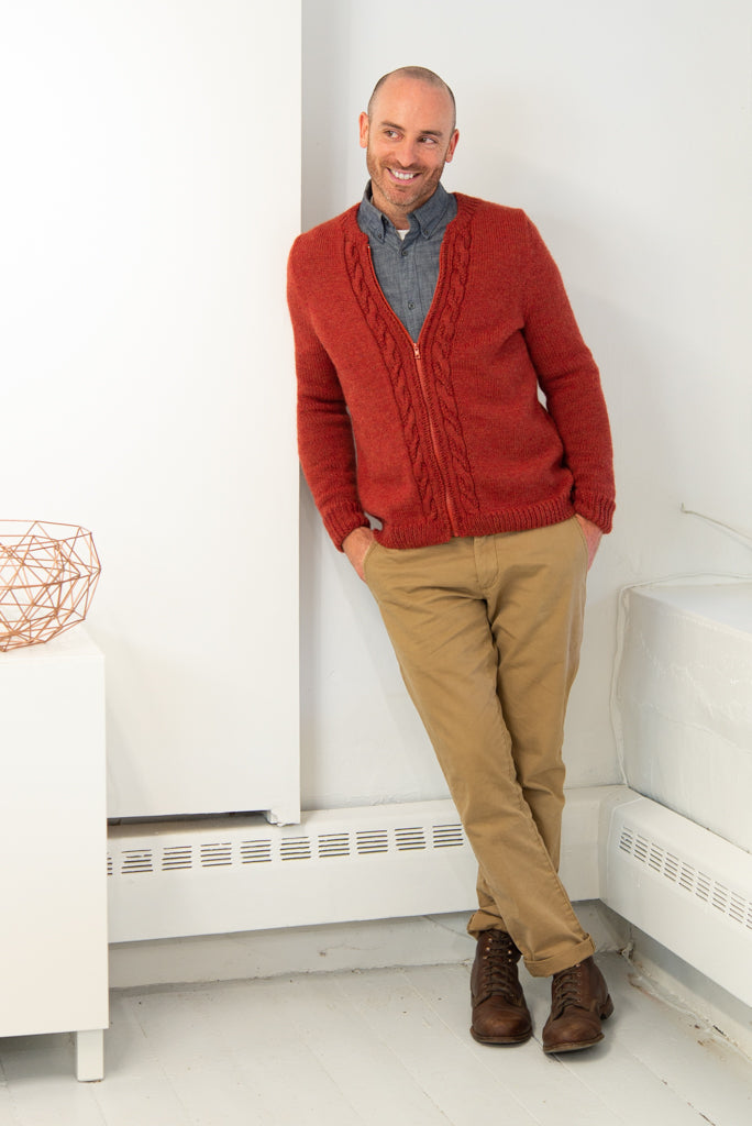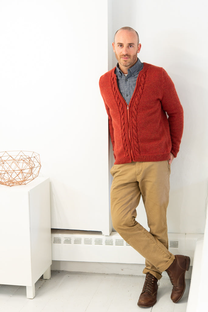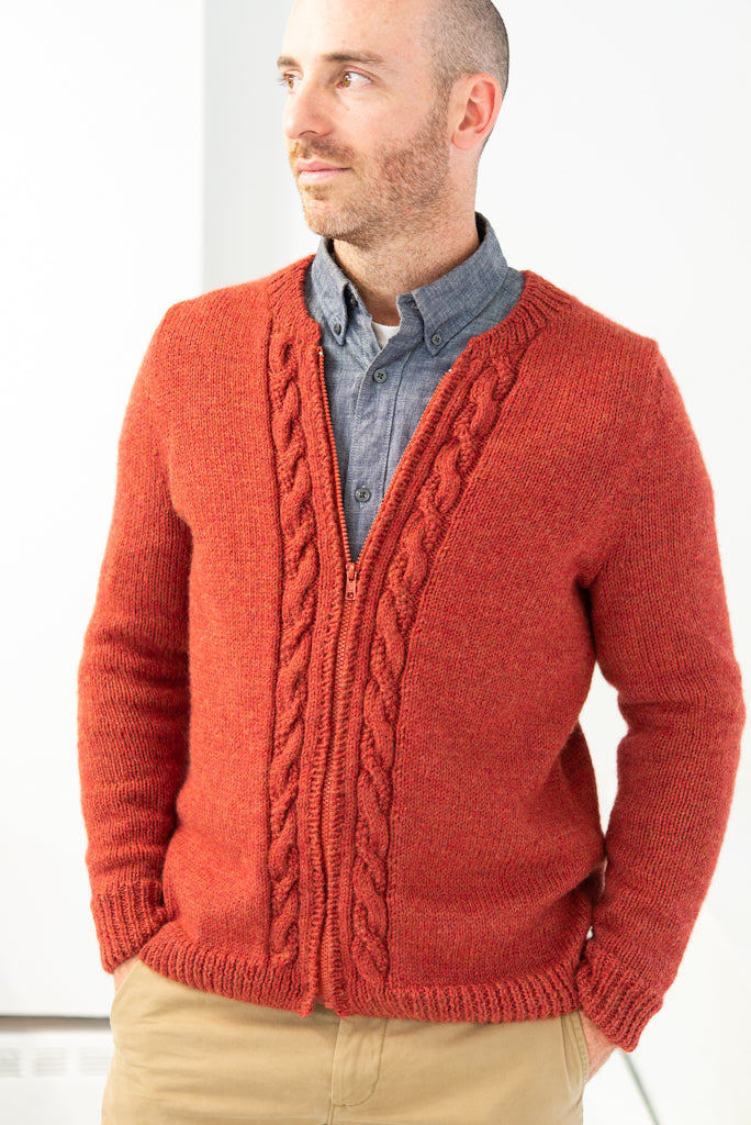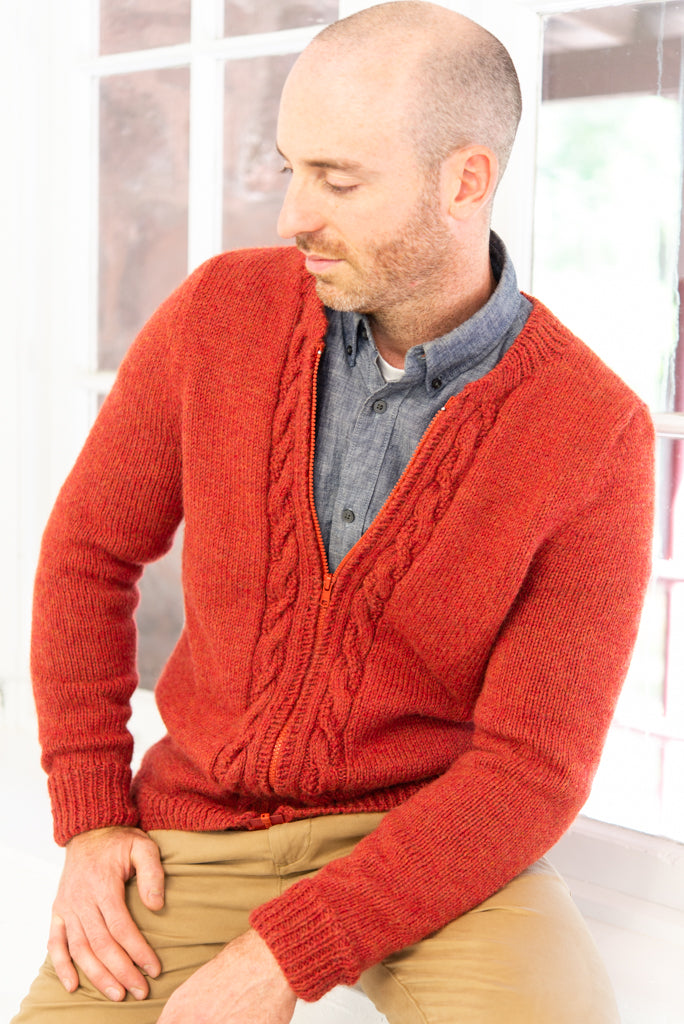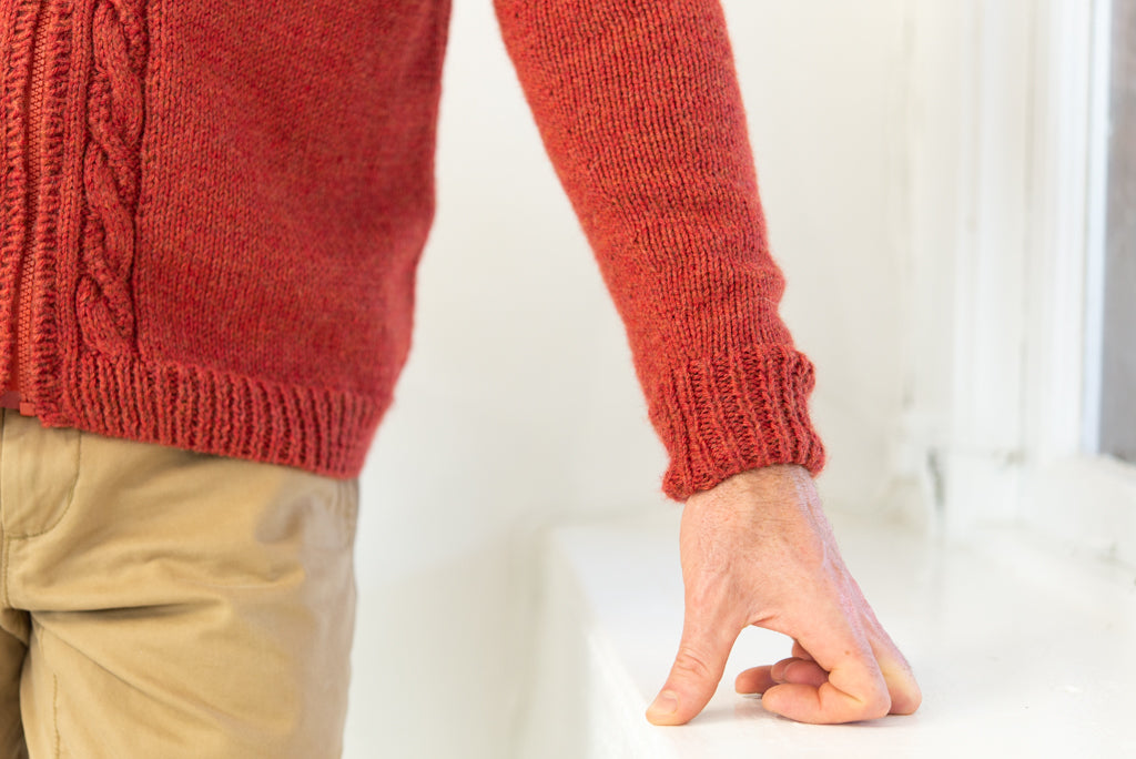 This advanced-level cardigan is worked in pieces from the bottom up and then seamed for stability, with set-in sleeves. The neckline is picked up and worked with short rows after the button placket has been faced for a zipper. You can find a tutorial on installing a zipper in the tutorials section of this site.