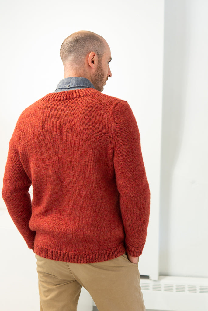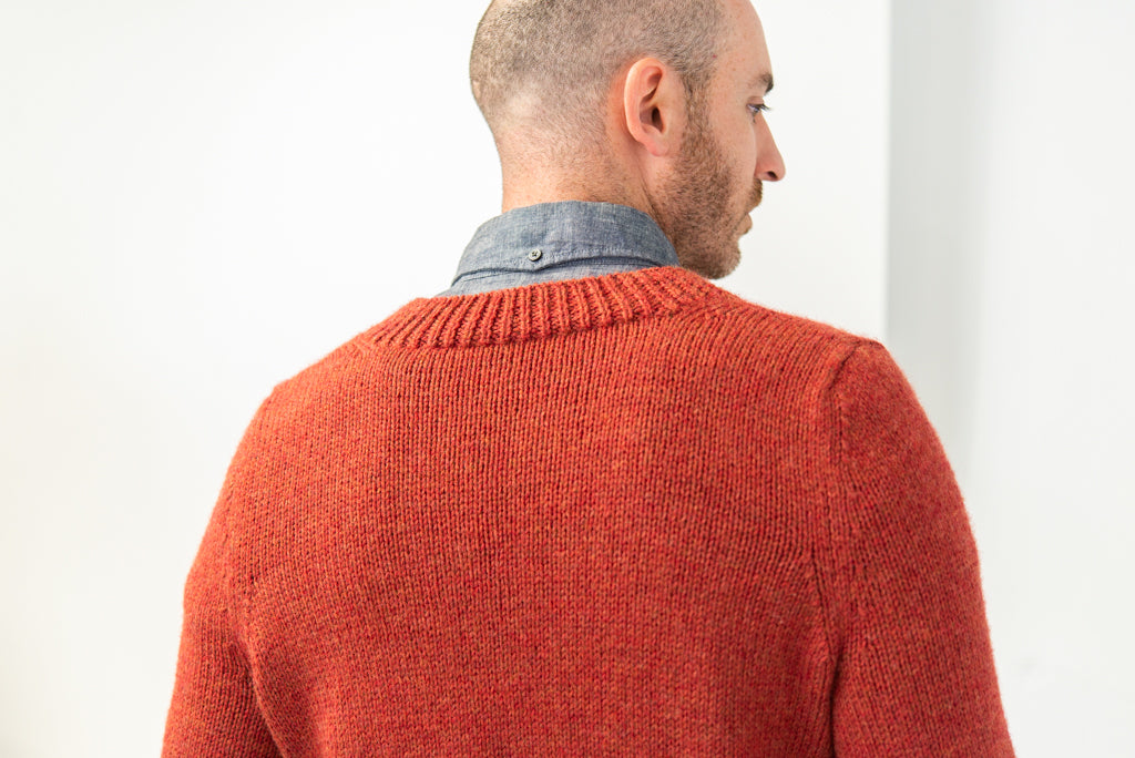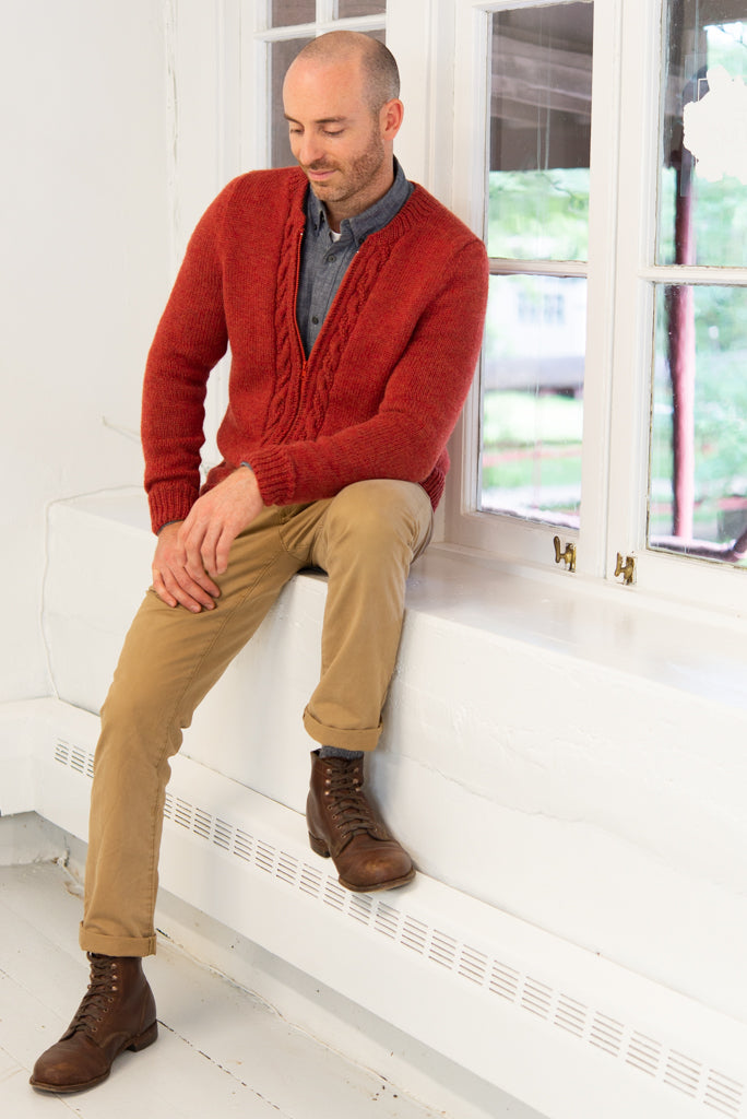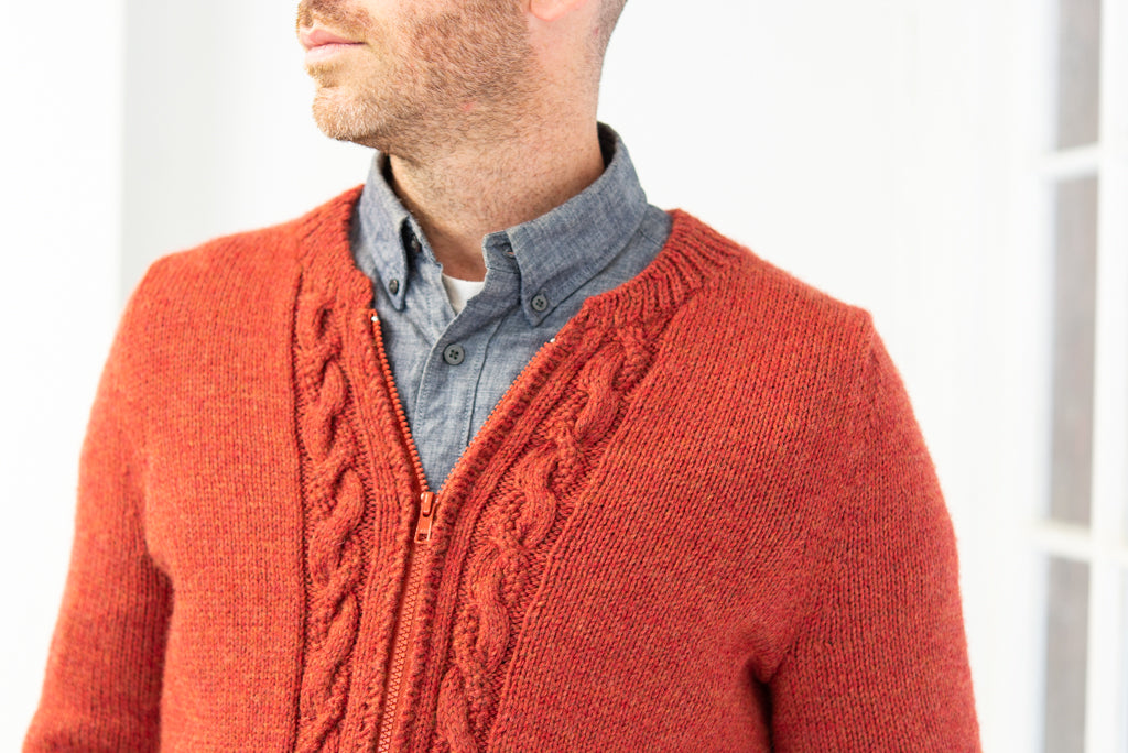 The Good Neighbor is worked in pieces from the bottom up and then seamed. The neckband is picked up and knitted on using short rows to shape; the zipper opening is picked up and knitted with a small amount of ribbing.