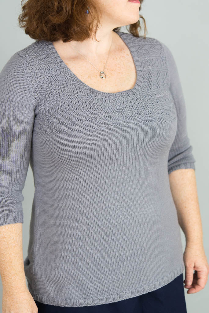 However you create your Tidal Pool, you'll work the garment in pieces from the bottom up seam it for a tailored look. The garment features set-in sleeves and side-seam shaping for the a-line silhouette in the traditional pattern.